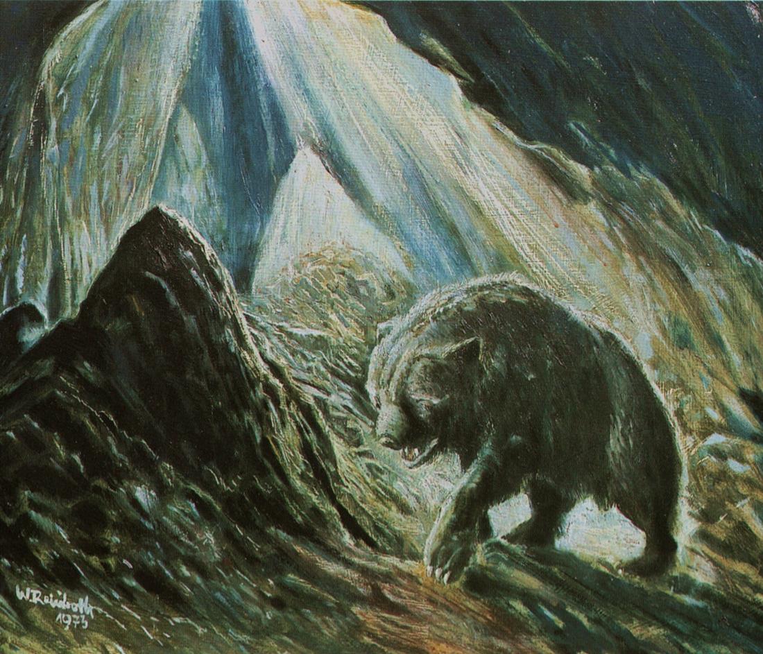 Höhlenbär Ursus spelaeus, Zeichnung von W. Reinboth, Walkenried (Repro Archiv GUf e.V.; Original 2001 verschollen).