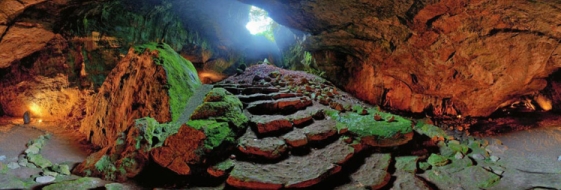 Einhornhöhle: 360°-Panorama-Blick durch die Blaue Grotte (C) Uwe Jungherr